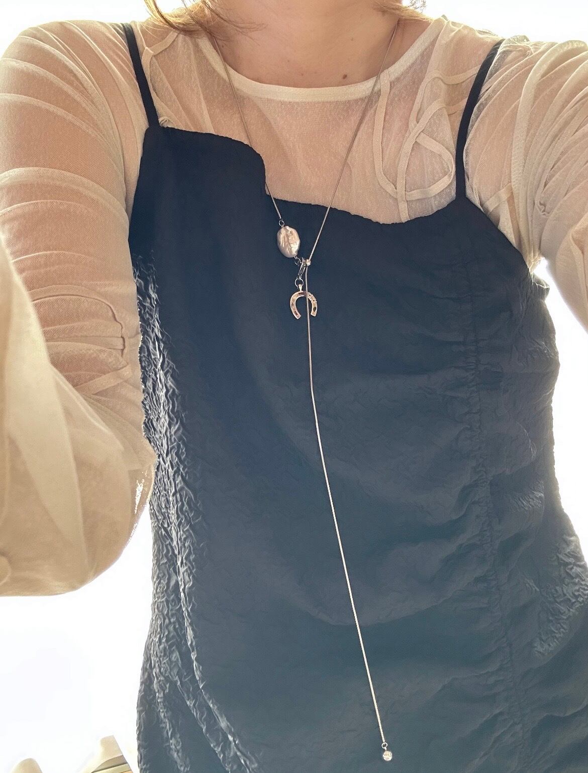 ホースシューチャームと淡水バロックパールのコンビネックレスです♩