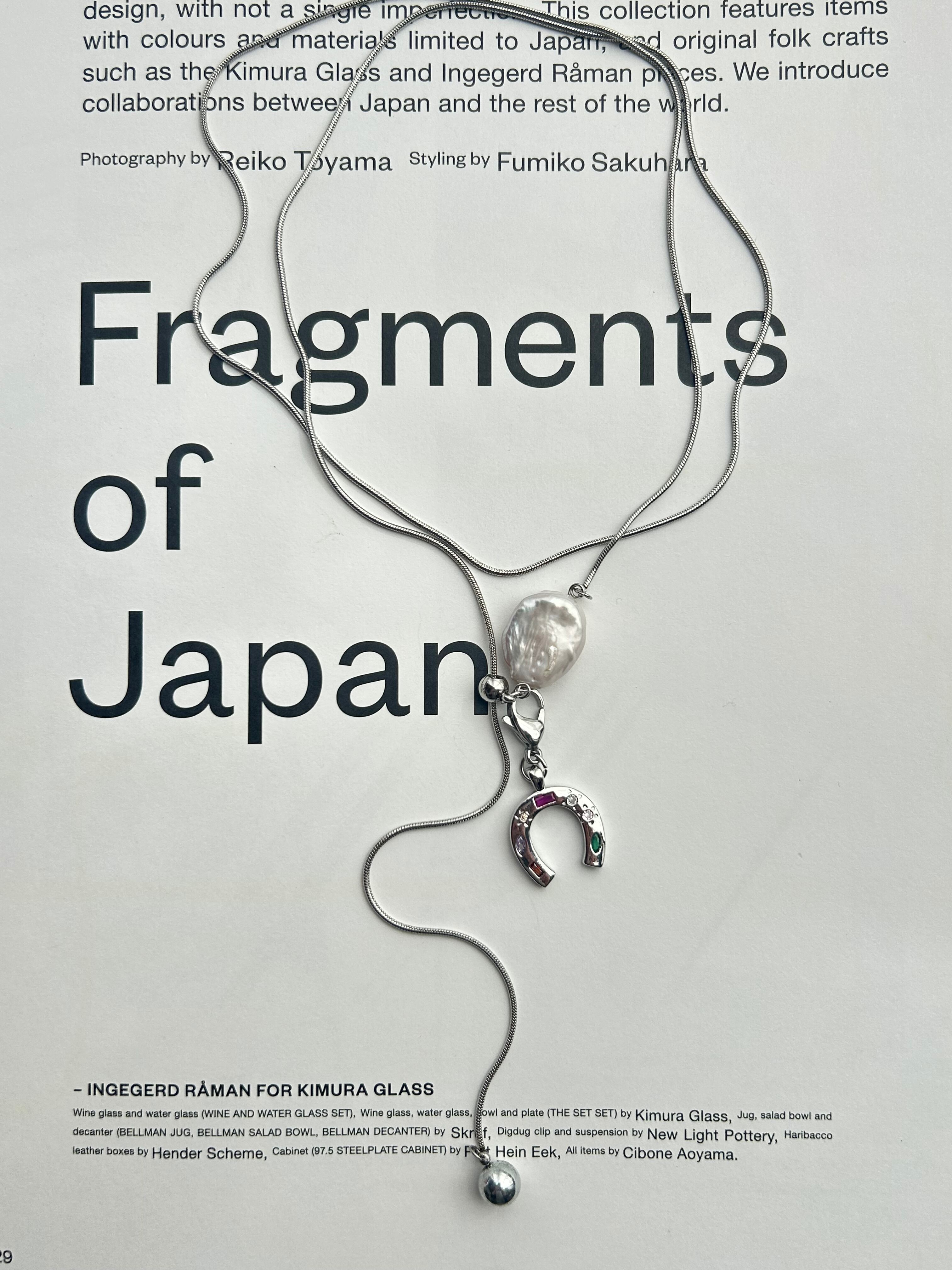 色とりどりのジルコニアを埋め込んだホースシューチャームは取り外し出来るのでシンプルなパールネックレスとしてもお使いいただける常に身につけられるアイテムです。