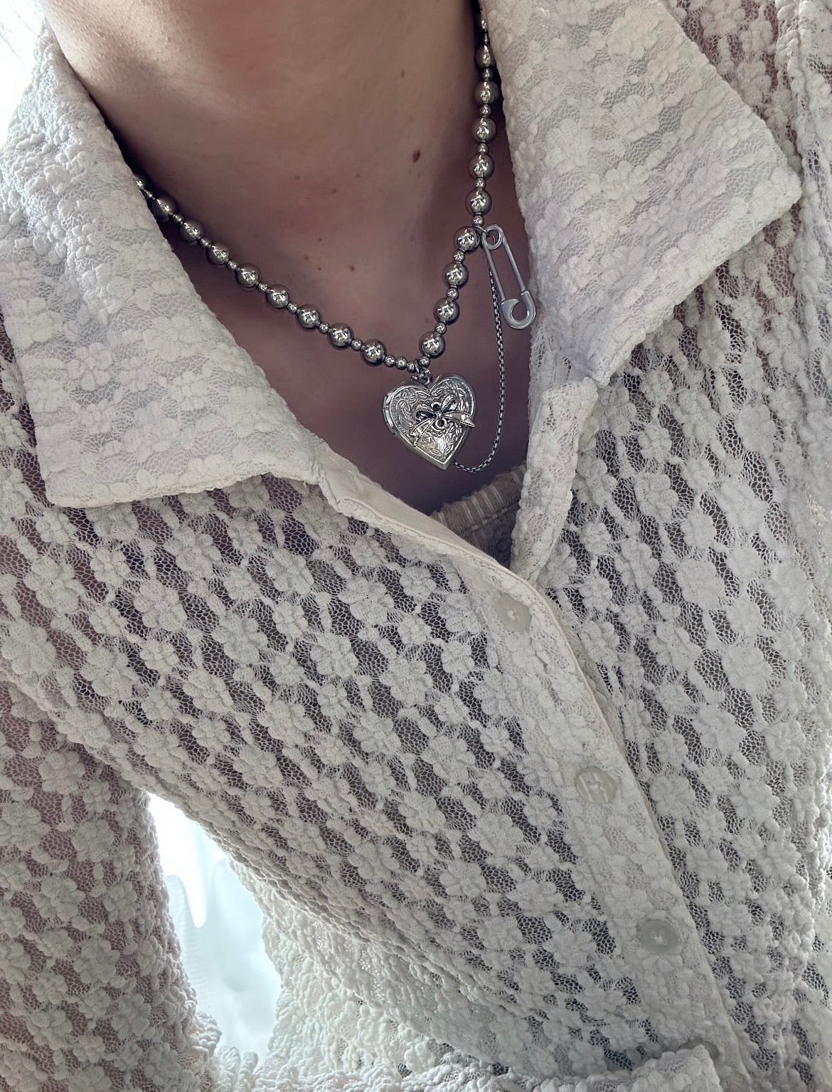 存在感あるボールネックレスと華奢なチェーンのバランスが通年通して映えるハートネックレス♡