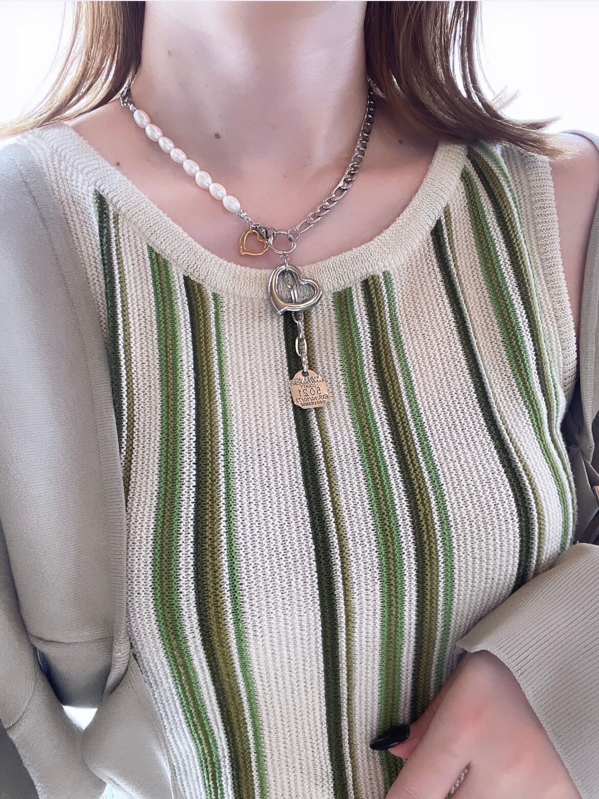 No.198 double open heart pearl & chain necklace