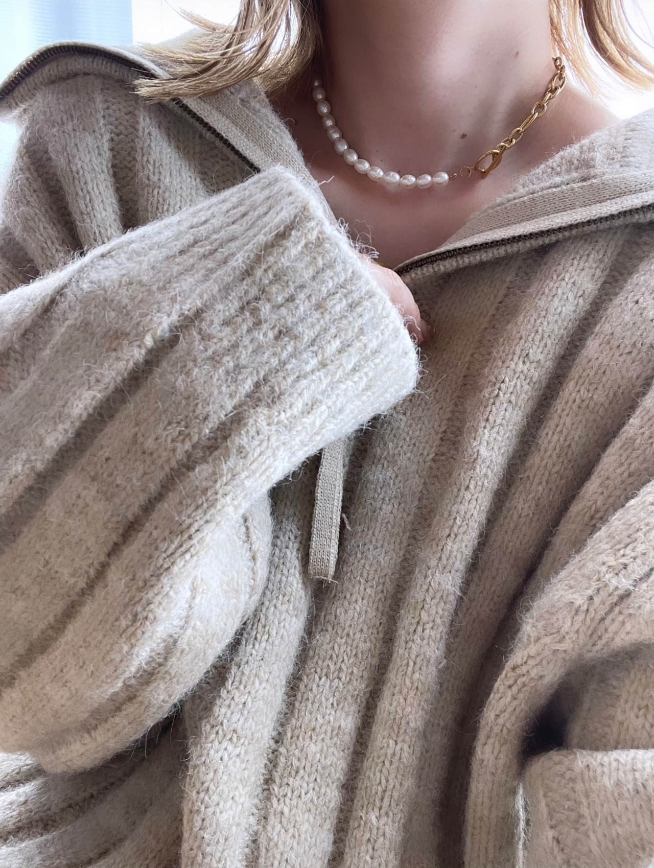 ゴールドチェーンと淡水パールと天然石がグッとAWっぽい雰囲気に~♡
