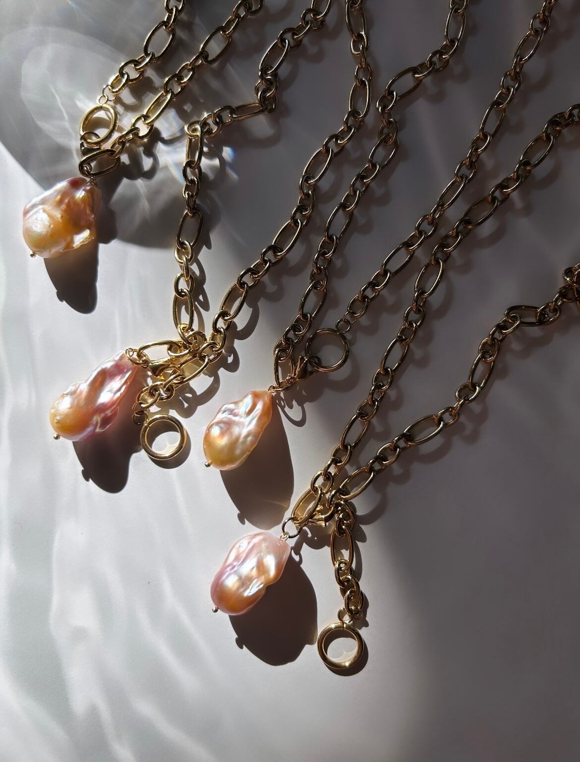 秋冬らしいモーヴピンクの艶々なオイスターパールが主役のネックレス♡