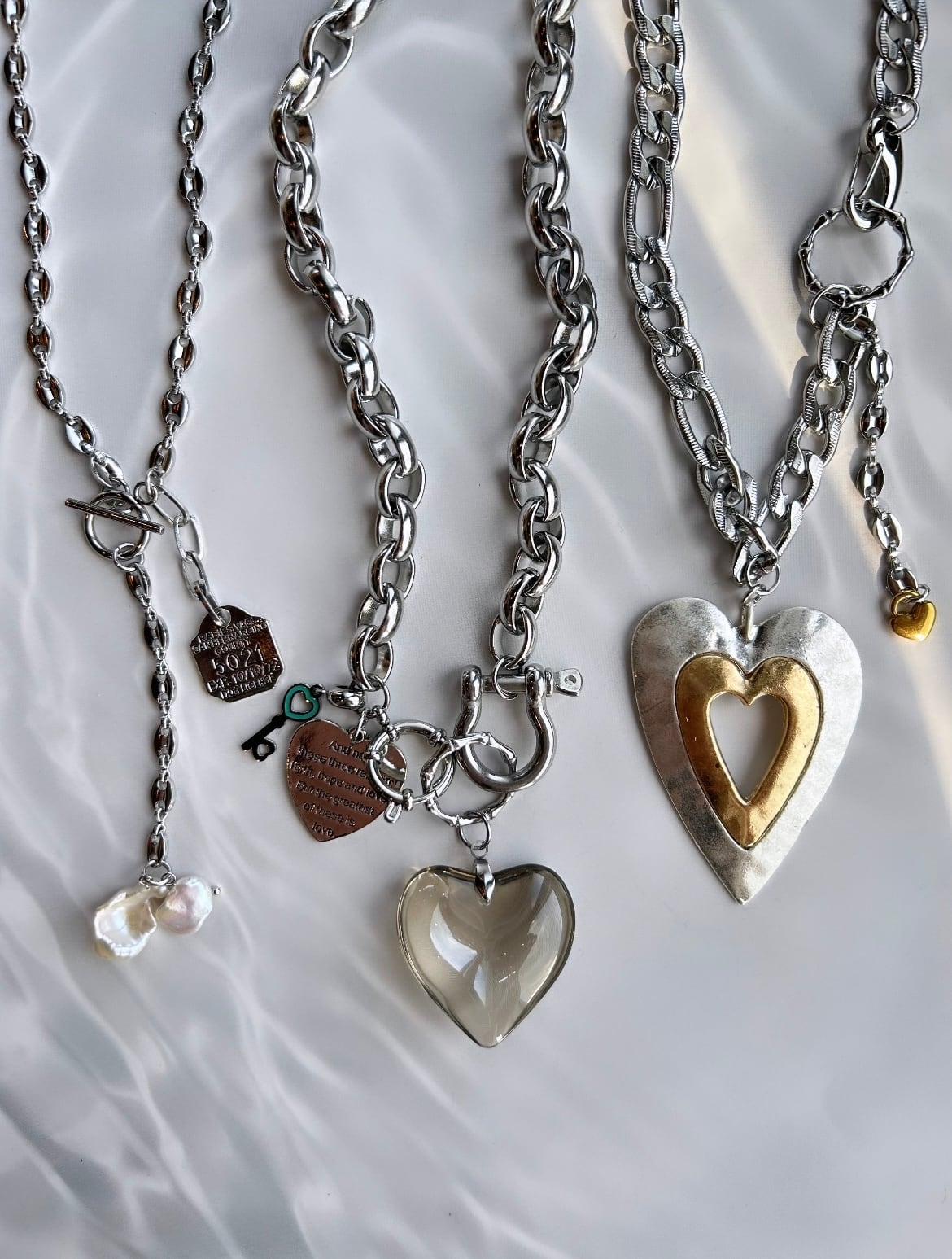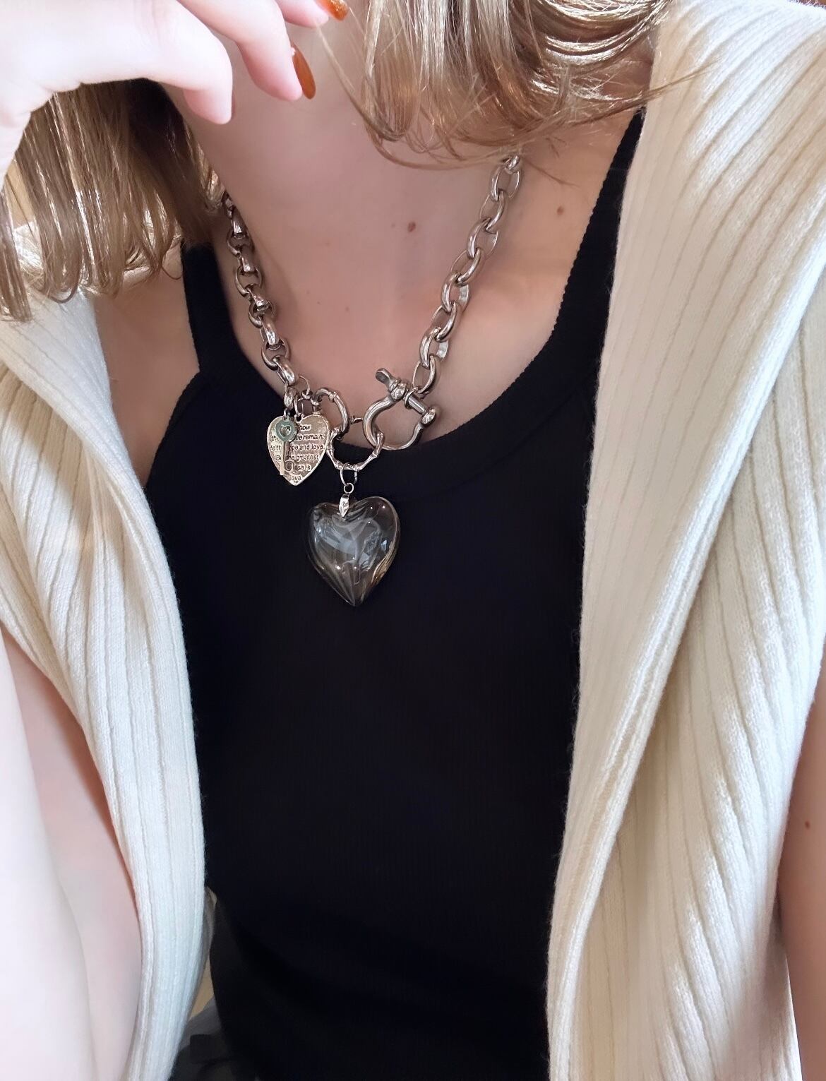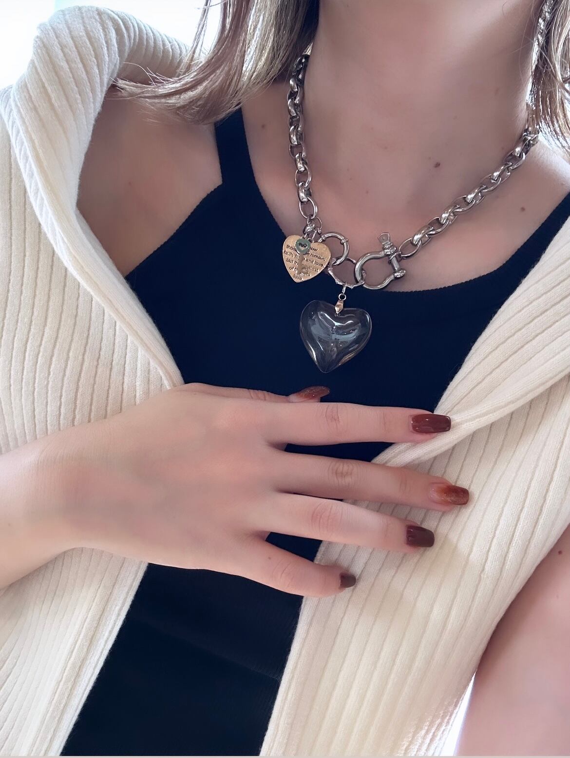 透け感&ぷるぷる具合がたまらないガラスハートチャームとロゴハートチャームのシルバーネックレスです♡