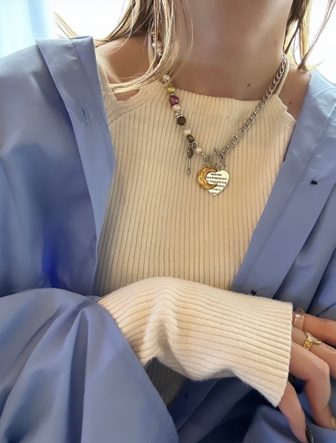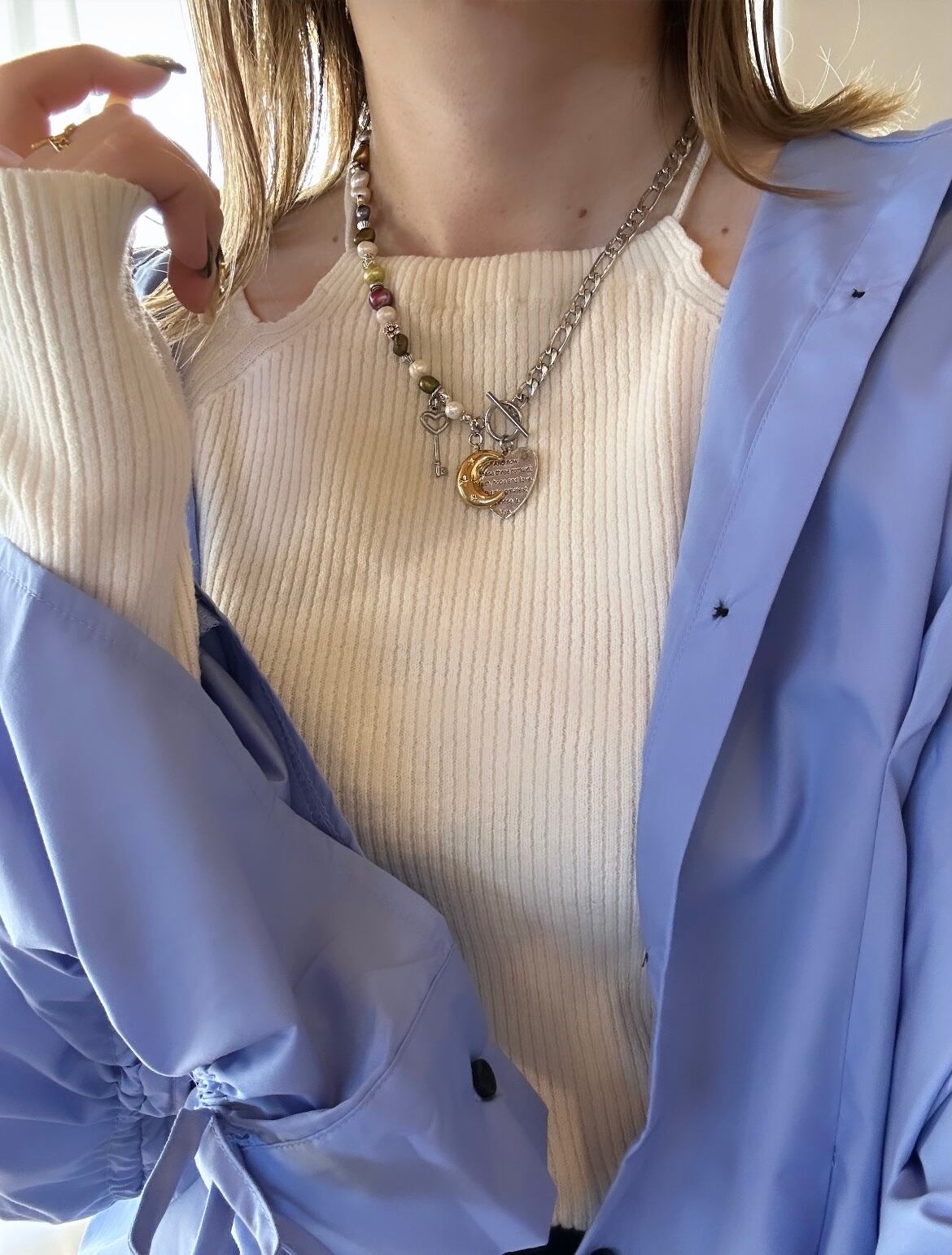 チェーン部分はステンレス素材なので、金属アレルギーの方も比較的安心してお使いいただけるかと思います。