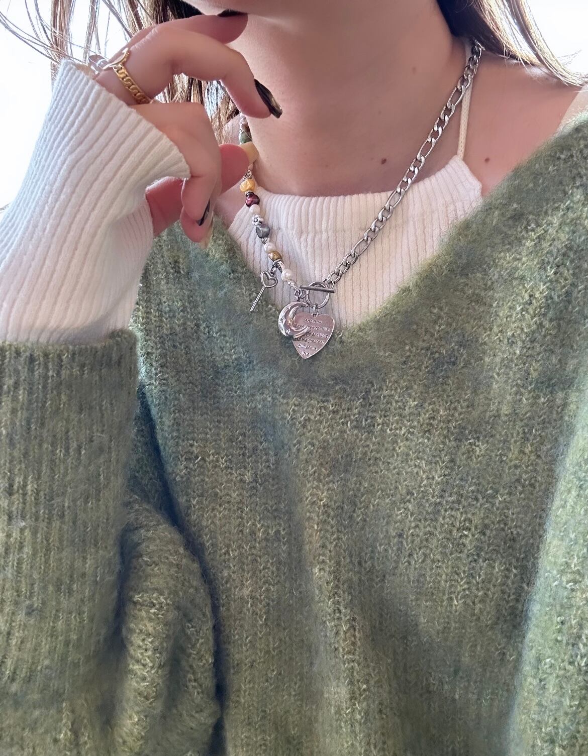 ニットに合わせたり、カジュアルにスウェットに合わせてお楽しみくださいませ ~。