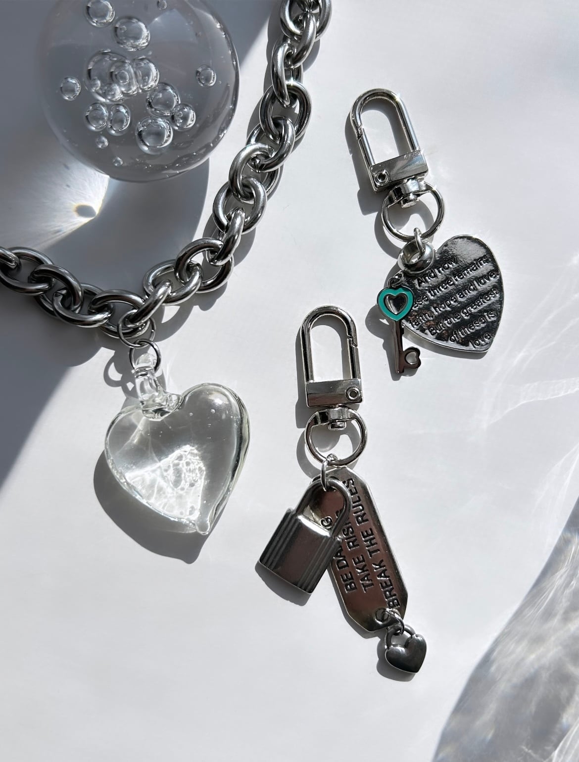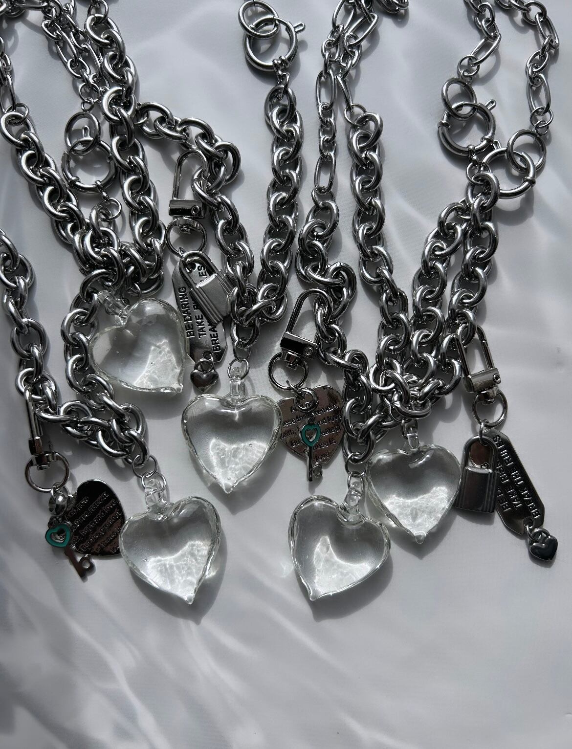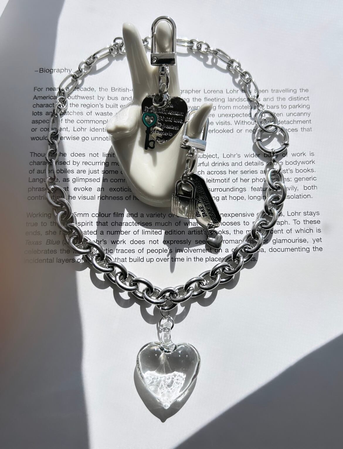 ガラスのうるちゅるん ~な透け感とフリーハンドで生み出す唯一無二なハートとチャームのコンビがたまらない可愛さのシルバーネックレスです♡