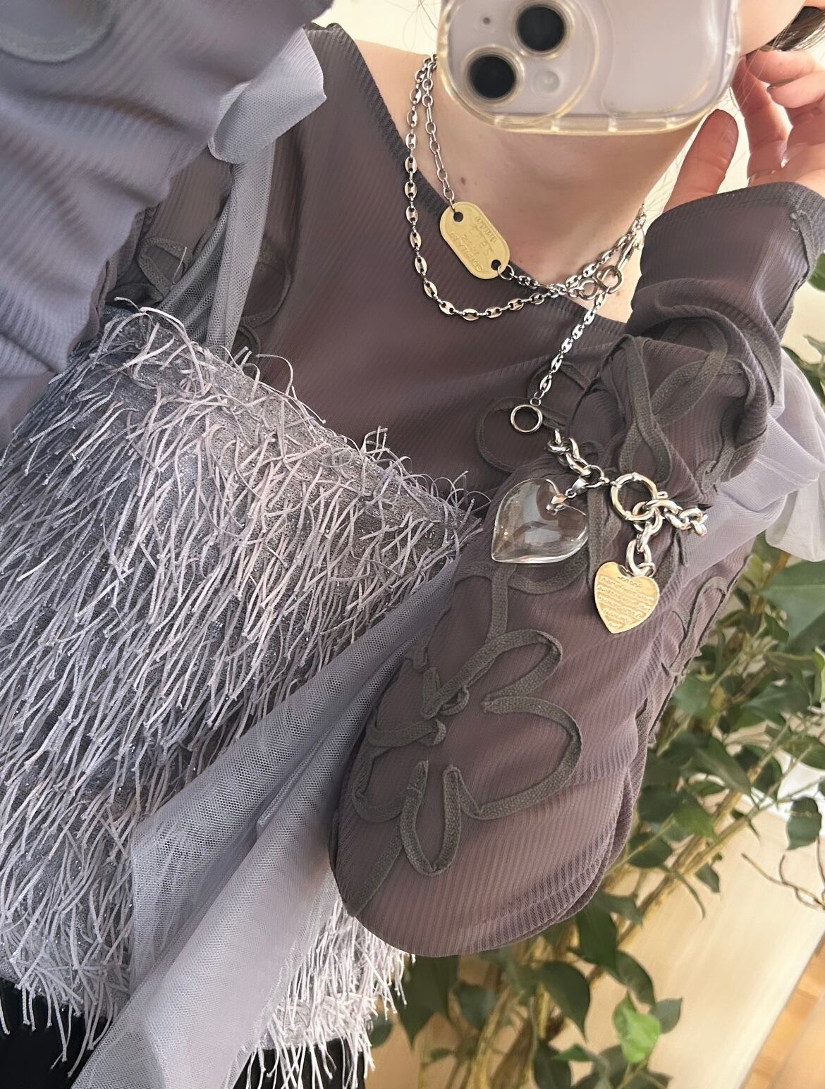 チェーンの配置も抜け感でるようにこだわりました!!留める箇所も2箇所あり留める位置によって雰囲気変わって可愛いんです♩