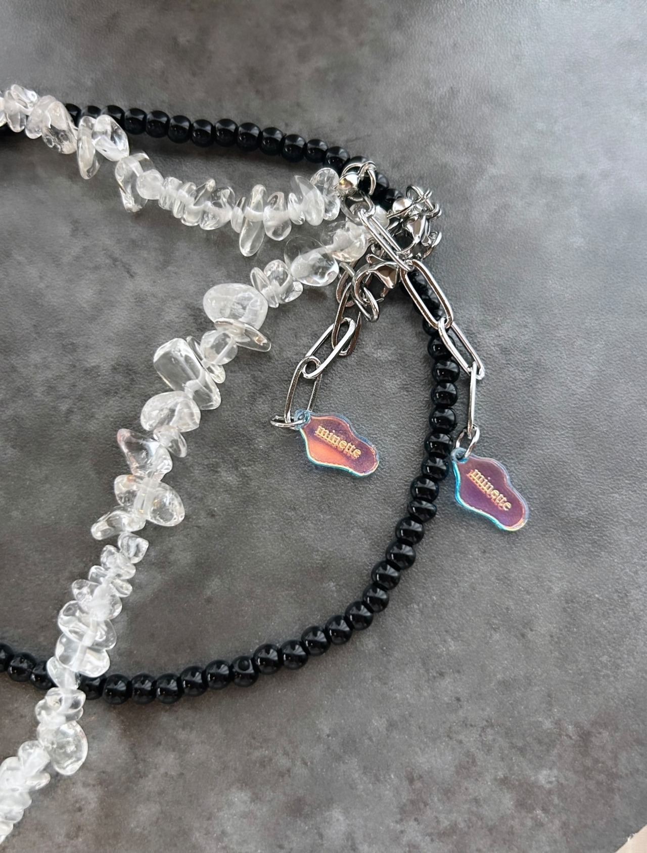 クリアは天然石、ブラックはビーズでお作りしました。軽やかな着け心地です♩