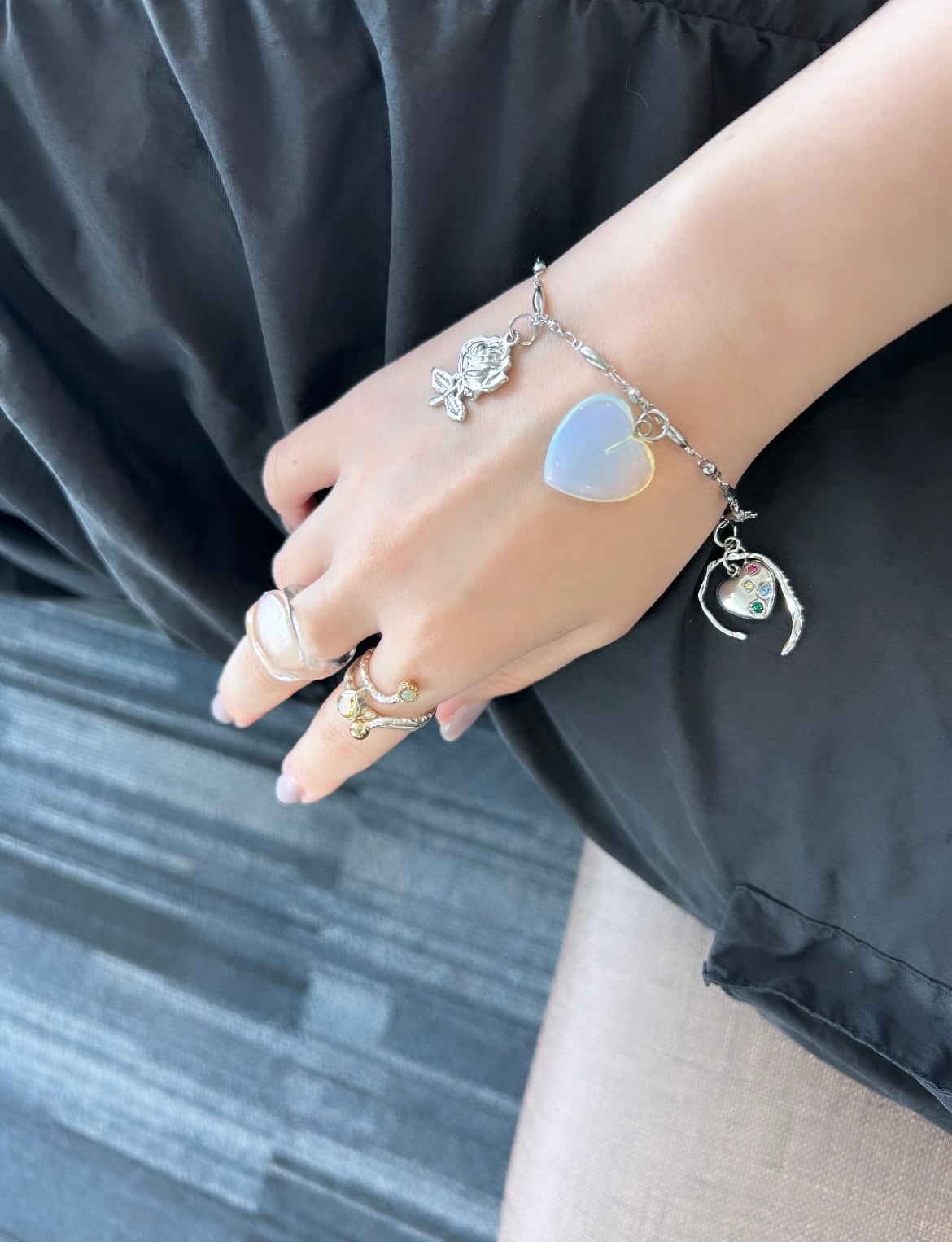チャーム一つ一つが主張しすぎず、抜け感もあり身に付けやすいデザインです♡