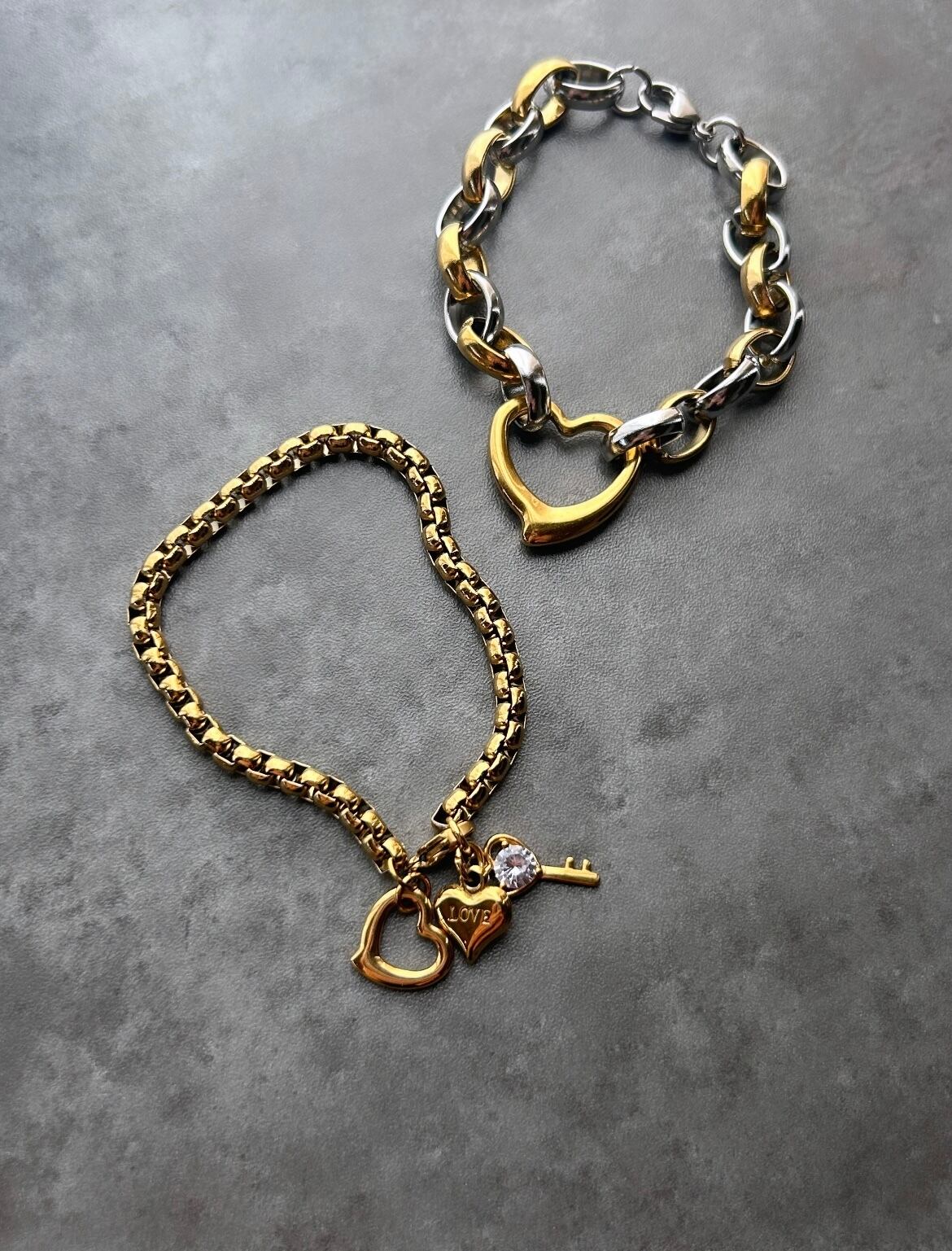オープンハート×LOVE刻印ハート×キラキラジルコニアがポイントのキーモチーフチャームのチェーンブレスレットです♡