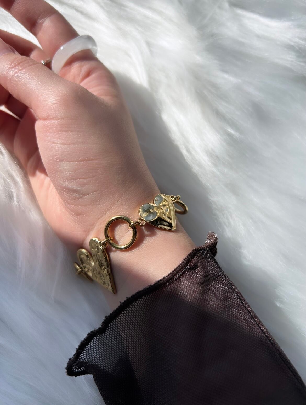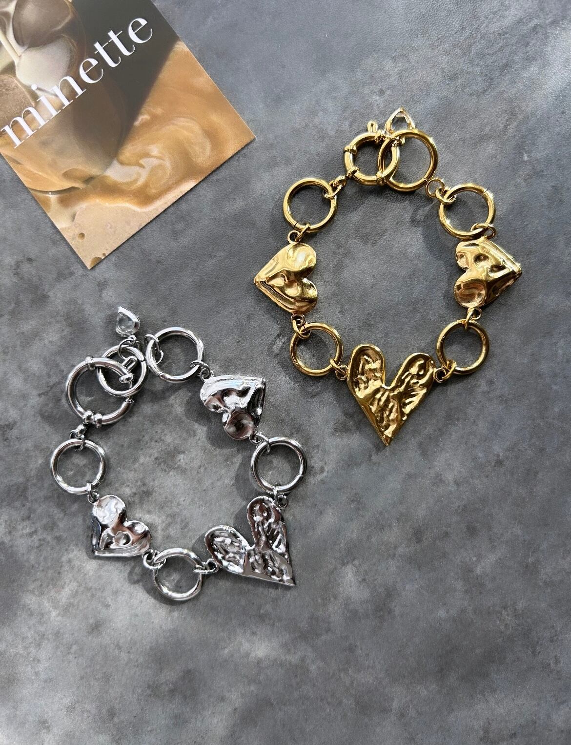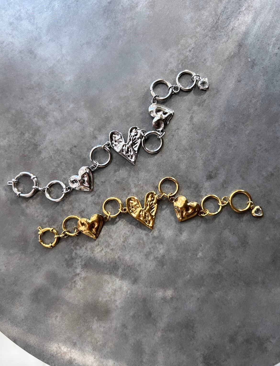 連なったハートがポイントのチェーンブレスレットです♡