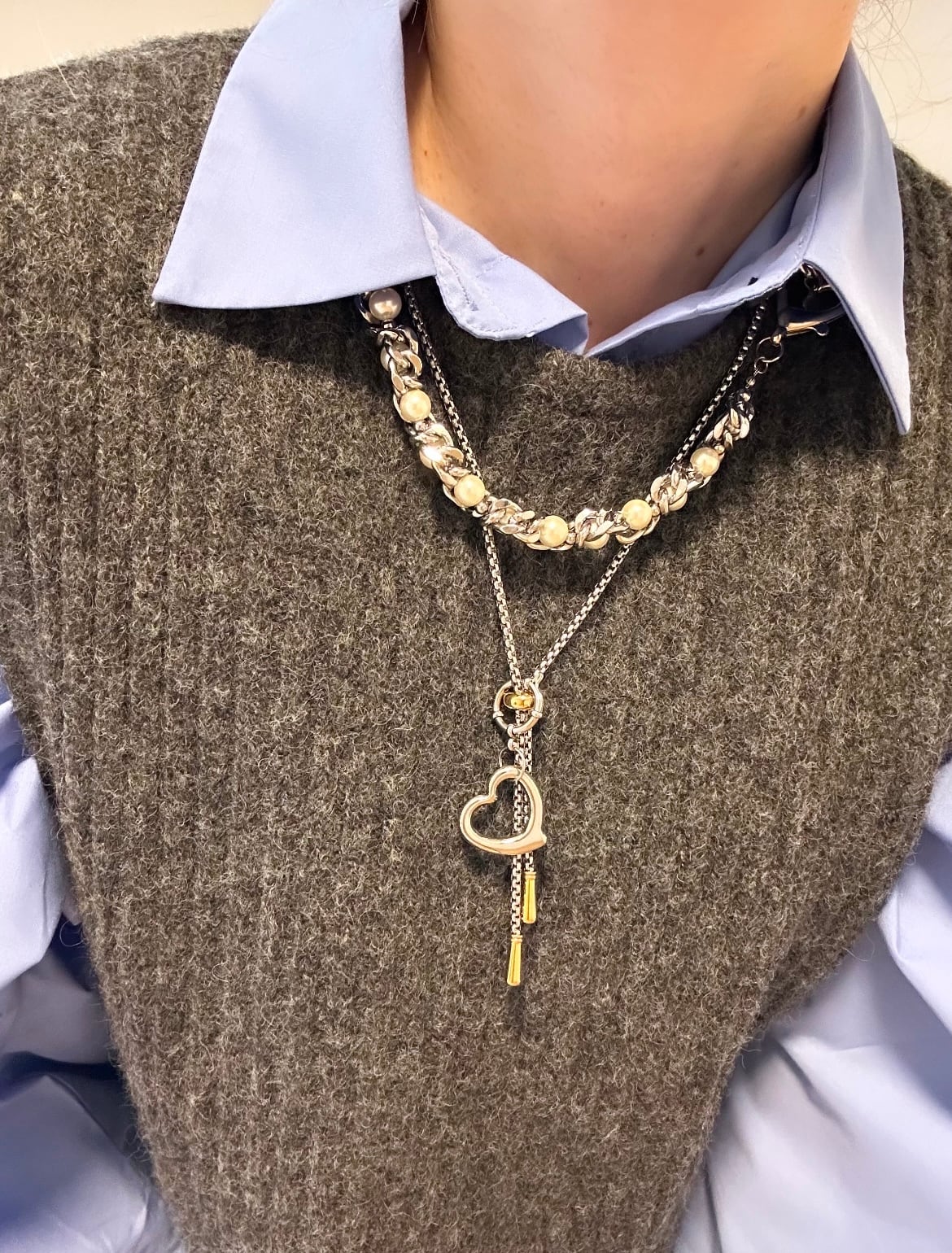 ネックレス部分にポイントでゴールドが入っており抜け感もあり上品なアイテムです。