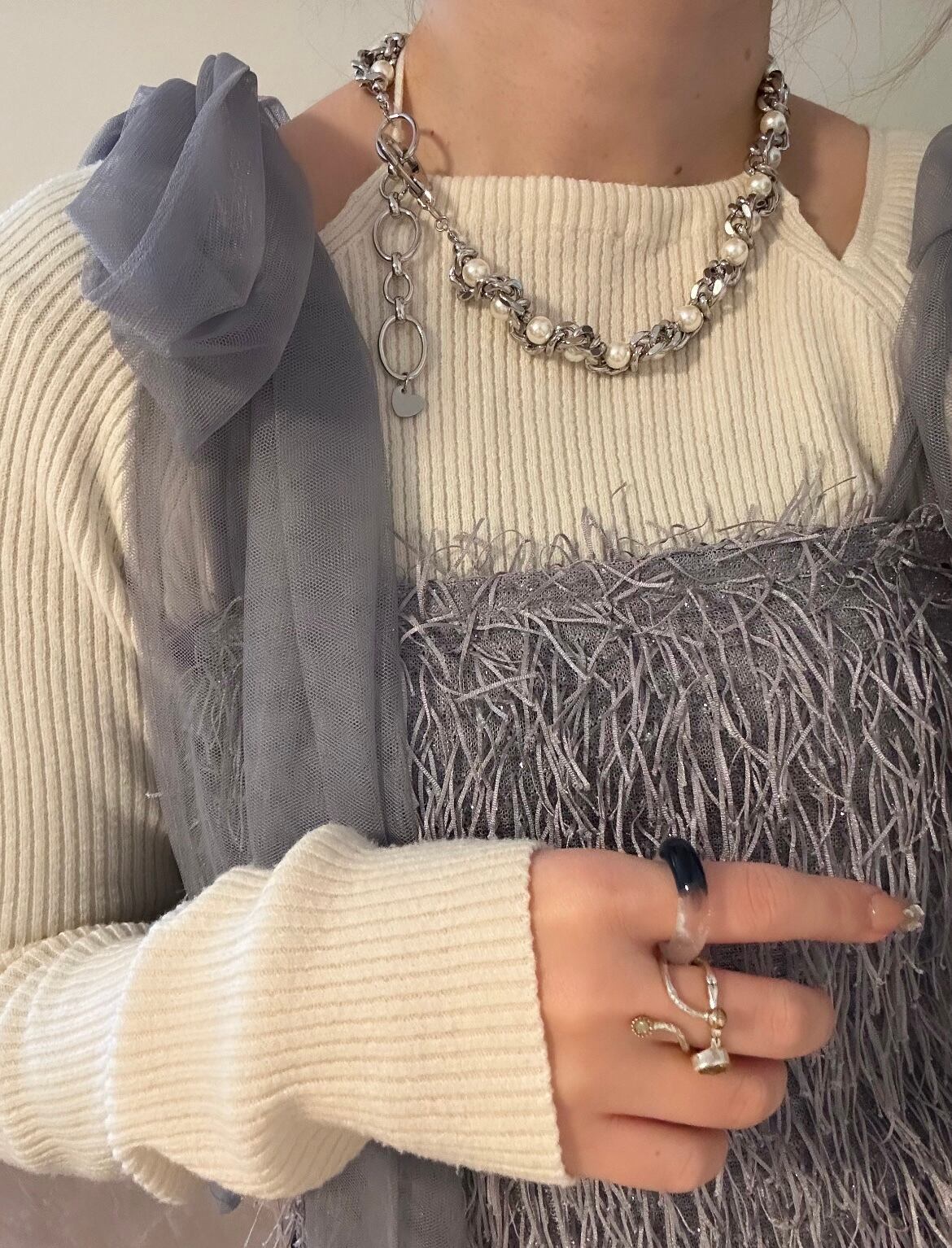 シルバーとパールのコンビネーションが最高に可愛いネックレス♡